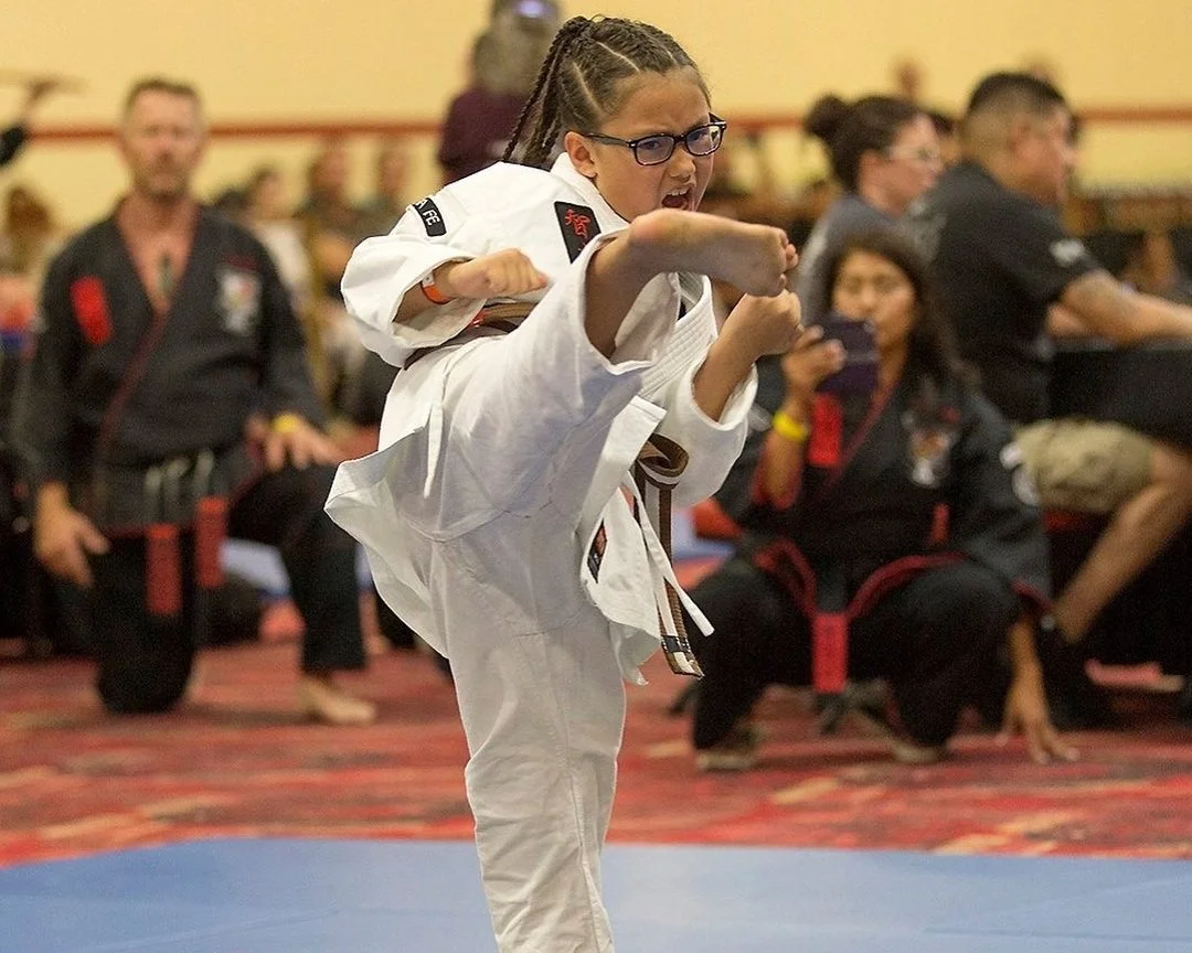 Our Kids Martial Arts program develops the essential physical skills for self-defense like coordination, speed, power, flexibility, timing, balance, and endurance through the practice of forms, self-defense techniques, ground fighting, basic blocking, kicking, striking drills, and sparring. Classes are grouped by belt level to provide more individualized attention.